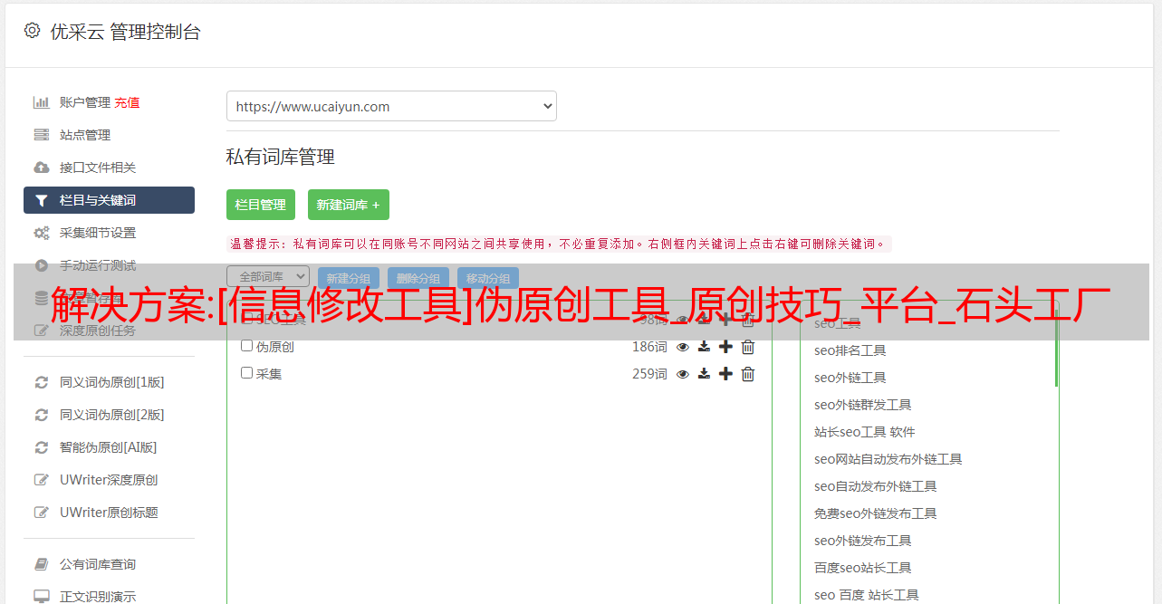 解决方案:[信息修改工具]伪原创工具_原创技巧_平台_石头工厂