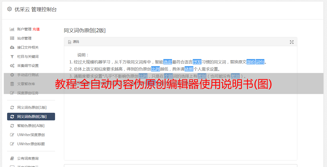 教程:全自动内容伪原创编辑器使用说明书(图)