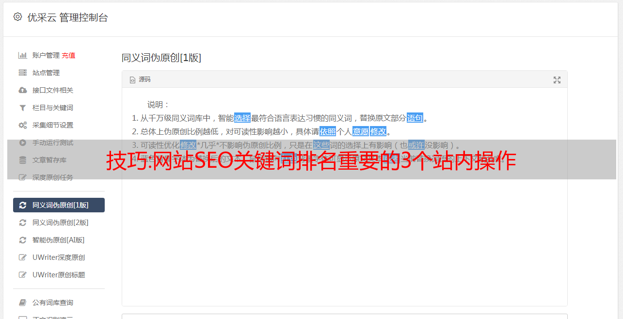 优采云 发布时间: 2022-11-11 00:15技巧:网站SEO关键词排名重要的3个站内操作