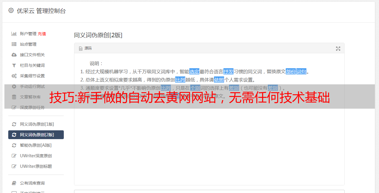 优采云 发布时间: 2022-11-11 02:26技巧:新手做的自动去*敏*感*词*网站,无需任何技术基础