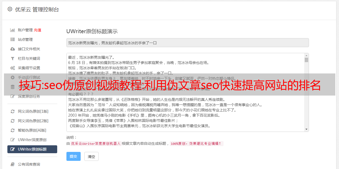 技巧:seo伪原创视频教程:利用伪文章seo快速提高网站的排名