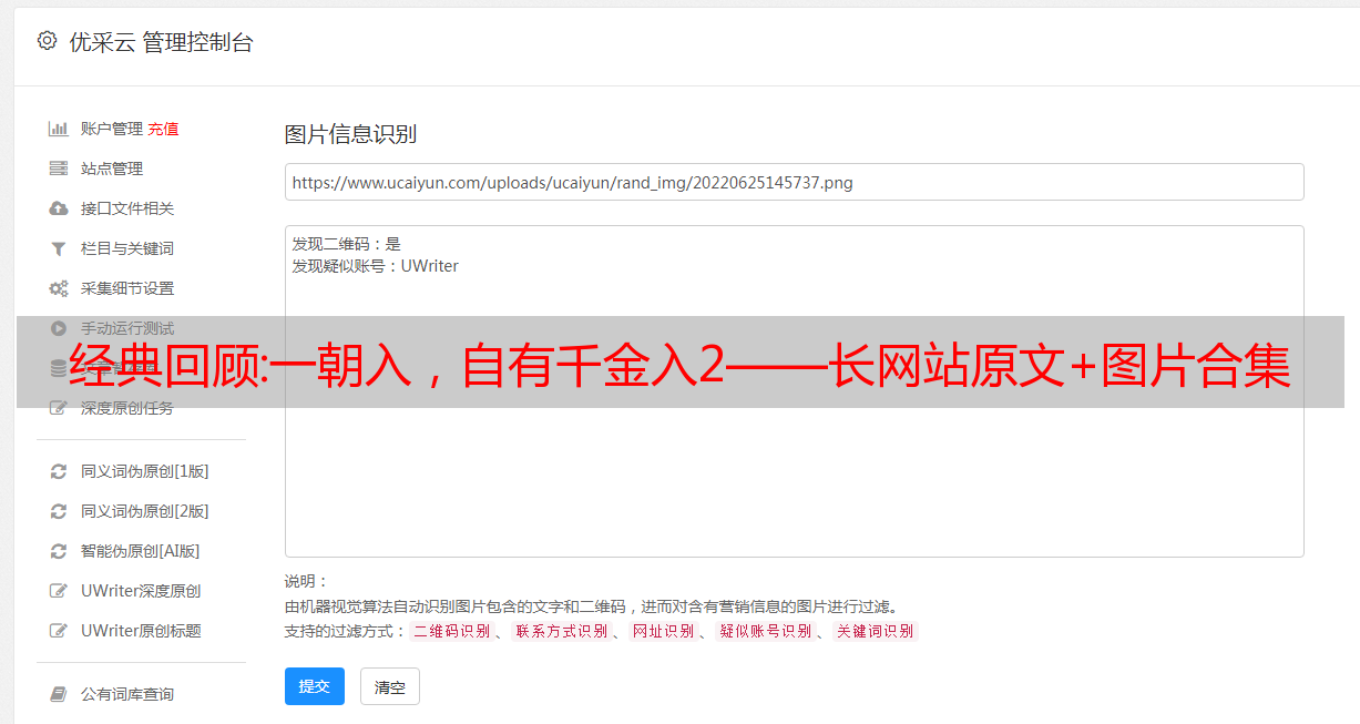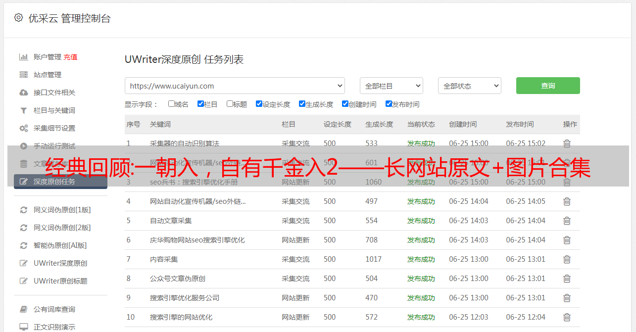 伪原创站长短评一朝入,自有千金入2——长网站原文+图片合集最新完成量:13000篇左右网站质量属于优质,不太多优质网站多更新滞后,原创用的不多原来的信息流广告提现效率太慢,原来的网站有些地方有点玄学,不太好说细节处理精致,优秀与否见仁见智,我的评分不太高,只能打九成公众号:互联网运营资料包内含:互联网运营干货(精选整理)互联网营销干货(整理排序)互联网市场规律(互联网市场规律总结)互联网竞品分析(互联网竞品的广告分析、网站分析)。