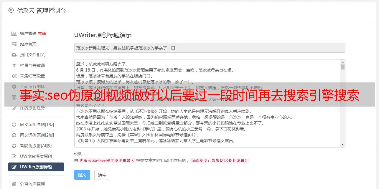 事实:seo伪原创视频做好以后要过一段时间再去搜索引擎搜索