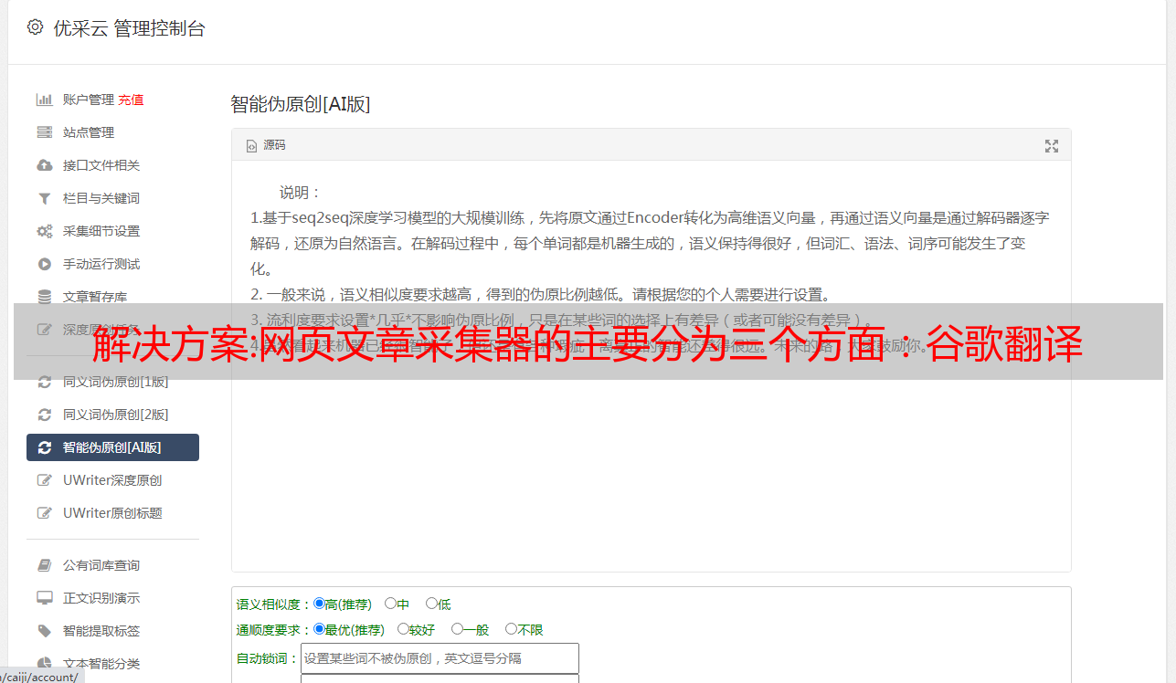 解决方案:网页文章采集器的主要分为三个方面:谷歌翻译