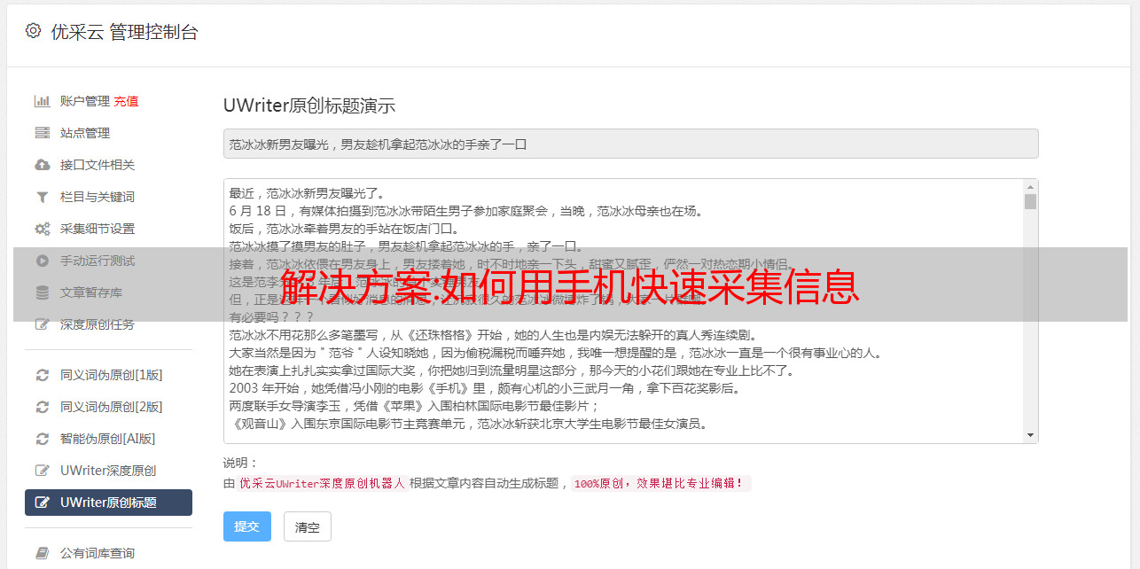 优采云 发布时间: 2022-11-13 14:40解决方案:如何用手机快速采集信息