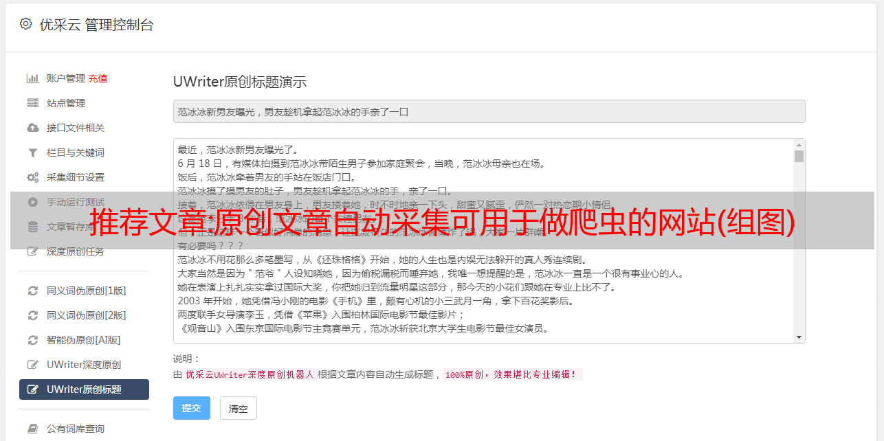 推荐文章:原创文章自动采集可用于做爬虫的网站(组图)