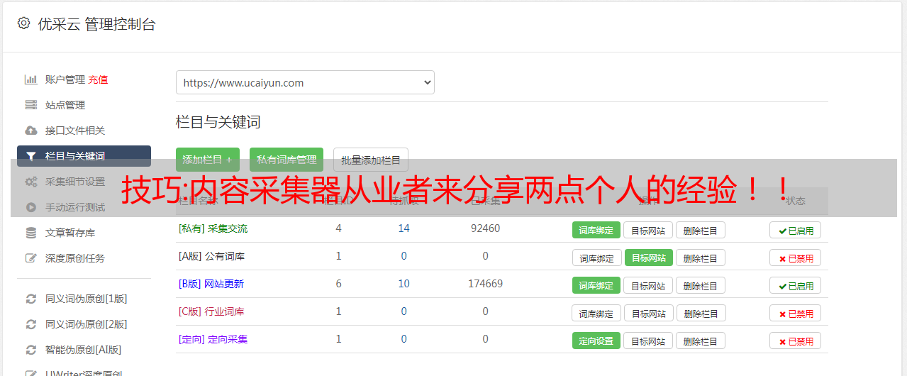 技巧:内容采集器从业者来分享两点个人的经验!!