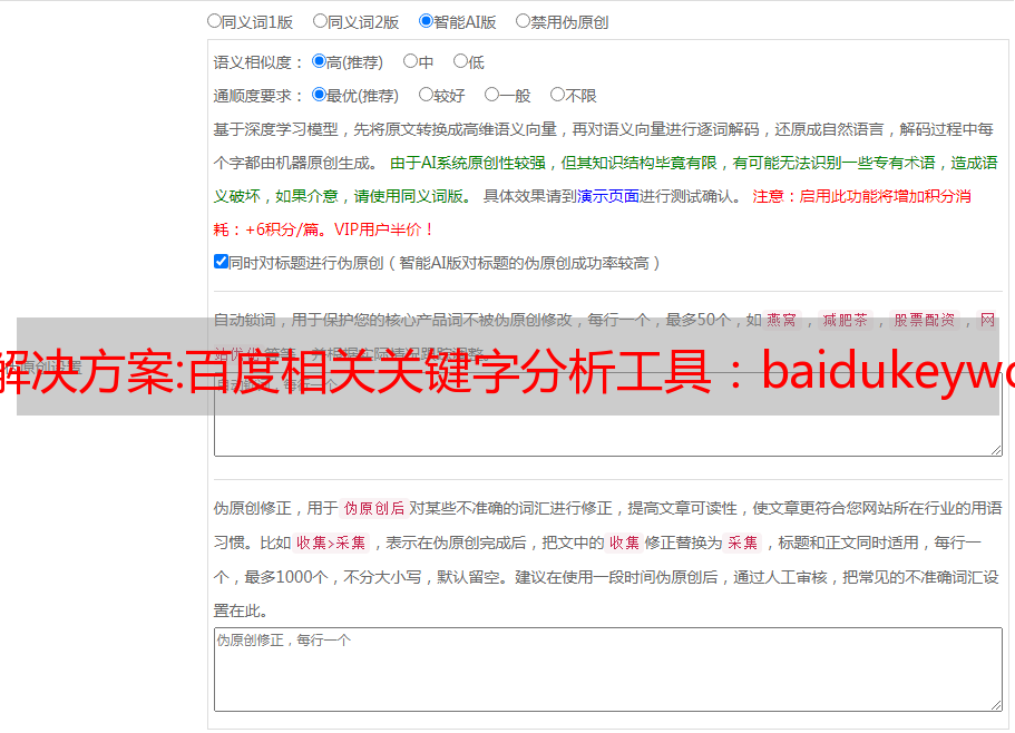 一款可以分析目标关键词、相关关键词、长尾关键词用户当天百度搜索量、收录网页等的工具。使用该工具可以帮你分析除你的主关键词以外用户经常搜索的相关词,也帮你分析这些词的热度,帮助你做更有针对性的关键词优化。