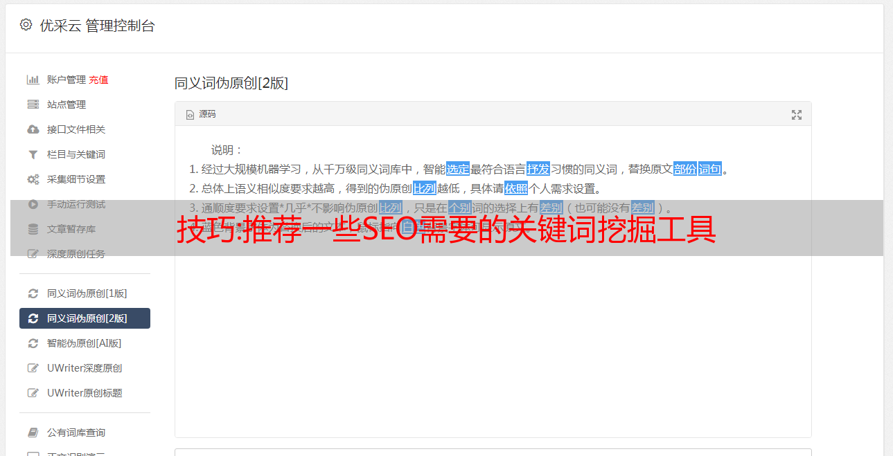 优采云 发布时间: 2022-11-14 22:13技巧:推荐一些SEO需要的关键词挖掘工具
