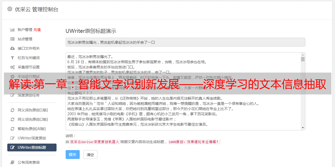 优采云 发布时间: 2022-11-15 06:24解读:第一章:智能文字识别新发展——深度学习的文本信息抽取