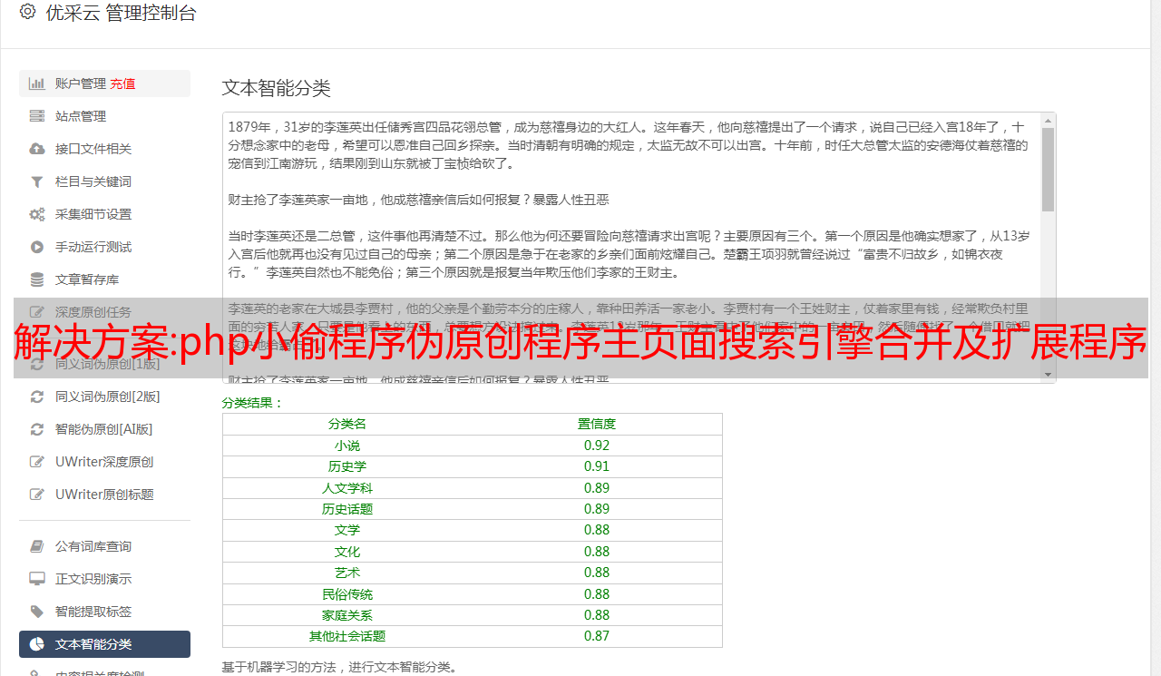 解决方案:php小偷程序伪原创程序主页面搜索引擎合并及扩展程序