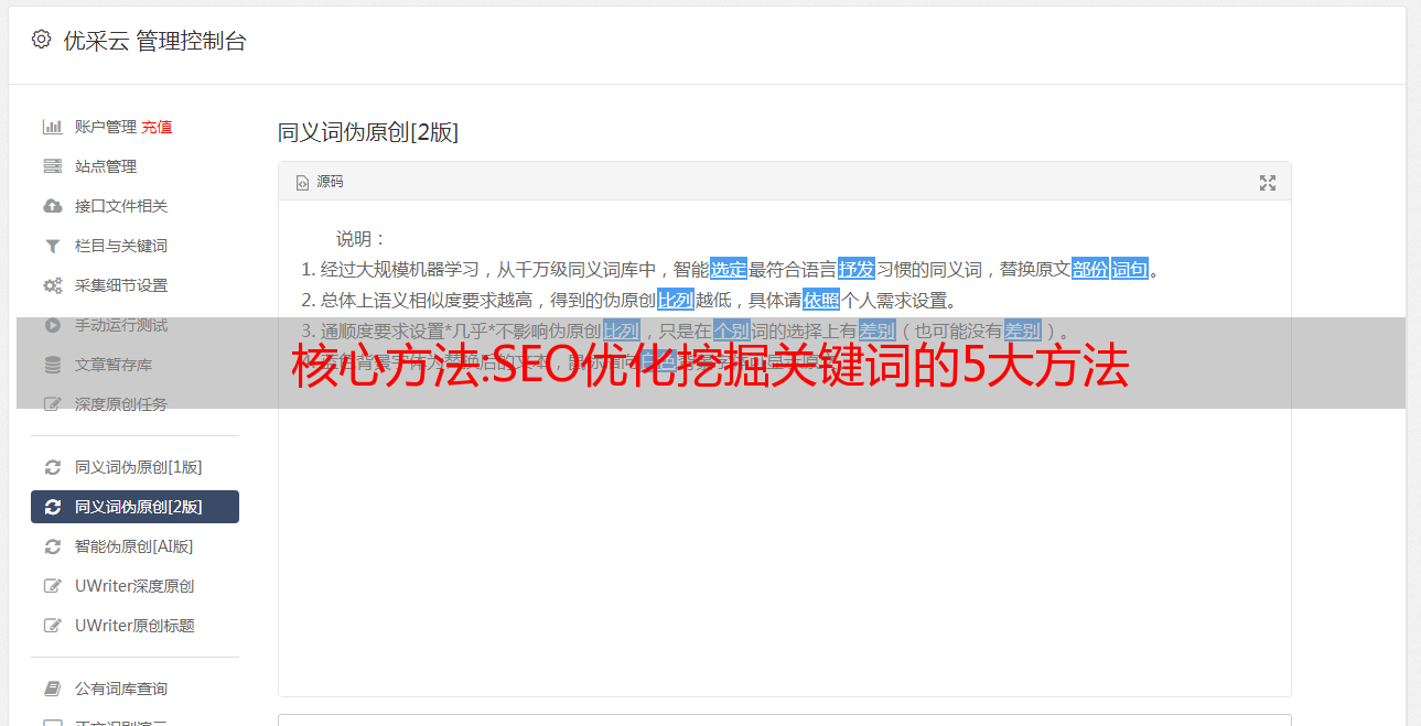 优采云 发布时间: 2022-11-16 04:34核心方法:SEO优化挖掘关键词的5大方法