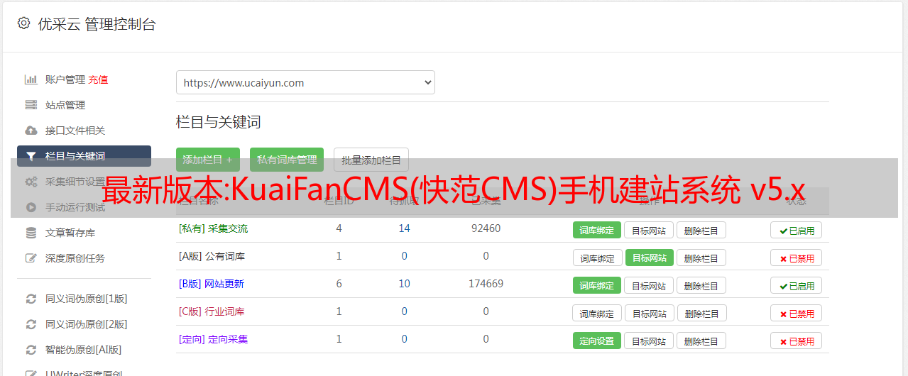 优采云 发布时间: 2022-11-16 14:44最新版本:KuaiFanCMS(快范CMS)手机建站系统 v5.x