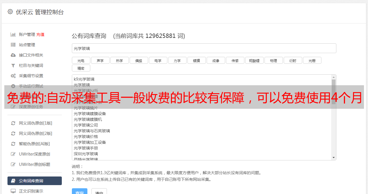 免费的:自动采集工具一般收费的比较有保障,可以免费使用4个月