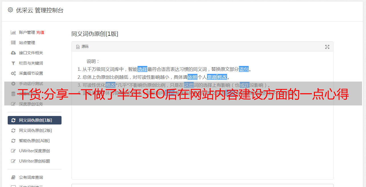 优采云 发布时间: 2022-11-16 23:32干货:分享一下做了半年SEO后在网站内容建设方面的一点心得