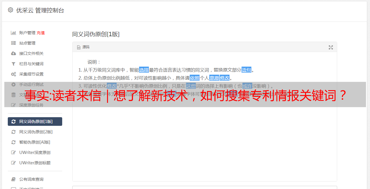 优采云 发布时间: 2022-11-18 09:17事实:读者来信|想了解新技术,如何搜集专利情报关键词?