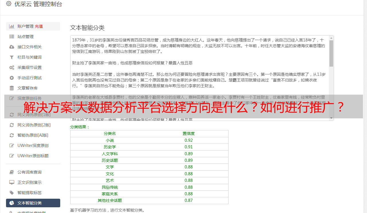优采云 发布时间: 2022-11-18 14:35解决方案:大数据分析平台选择方向是什么?如何进行推广?