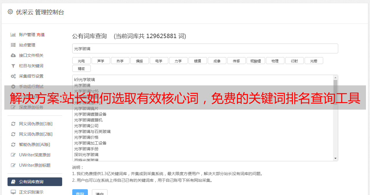 优采云 发布时间: 2022-11-19 09:29解决方案:站长如何选取有效核心词,免费的关键词排名查询工具哪里有?