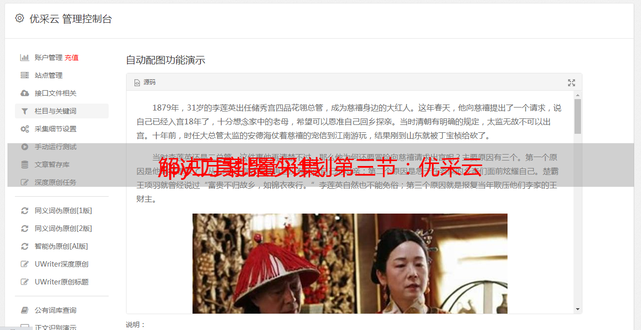 在后期处理中,我们必须想办法让搜索引擎看不出两篇文章的相同之处。里面应该有很多SEO高手,我就不瞎说了。先说一下我们现在实现的功能。您可以混合使用这些来实现内容的