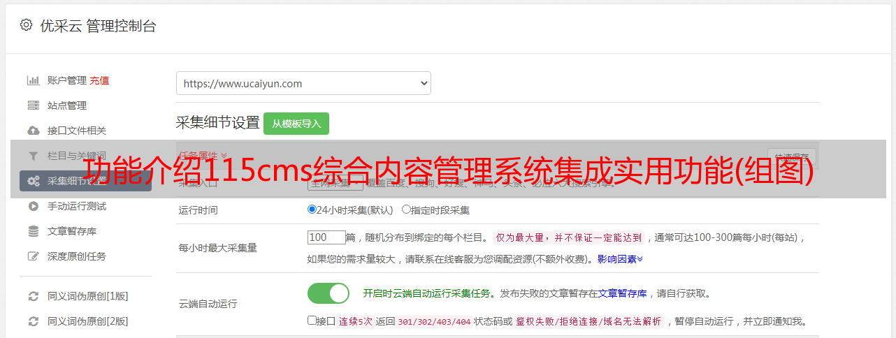 优采云 发布时间: 2021-05-29 20:23功能介绍115cms综合内容管理系统集成实用功能(组图)