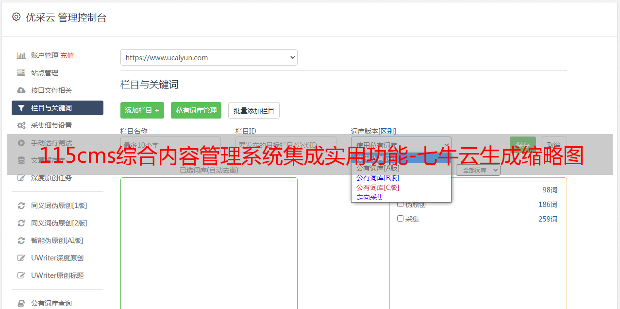 优采云 发布时间: 2021-05-29 21:14115cms综合内容管理系统集成实用功能-七牛云生成缩略图