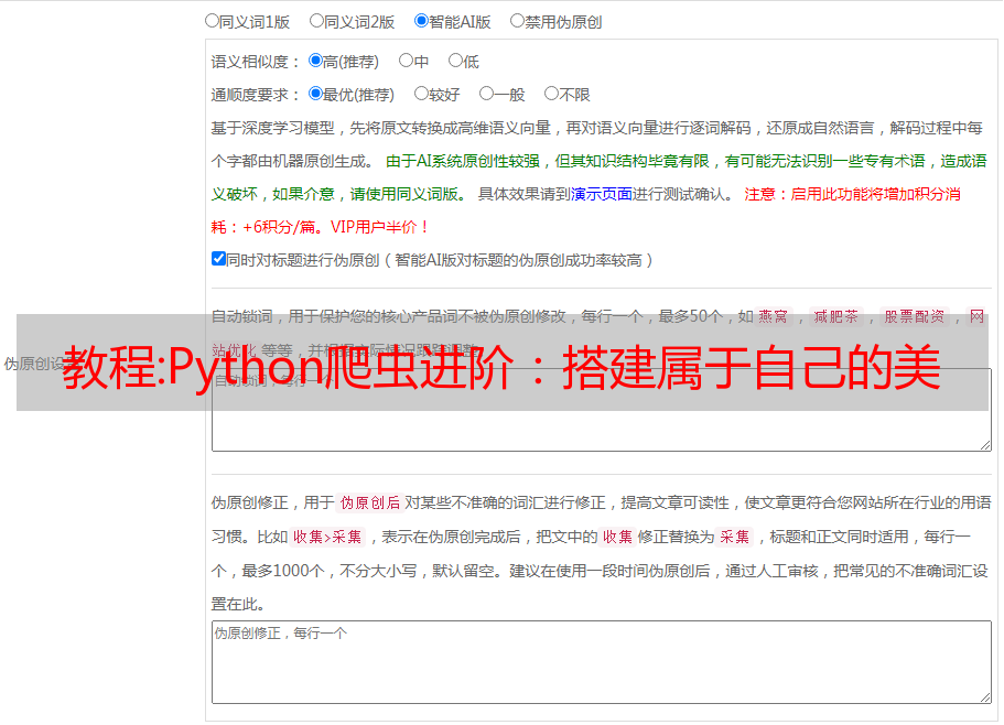 详细使用说明请参见:智能媒体AI伪原创使用帮助!