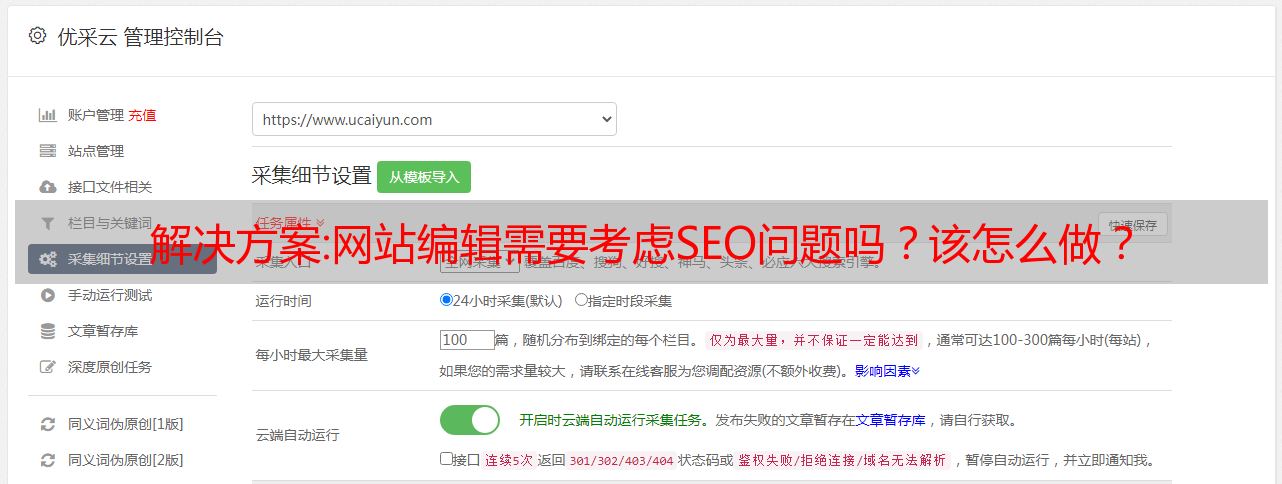 优采云 发布时间: 2022-12-03 04:17解决方案:网站编辑需要考虑SEO问题吗?该怎么做?