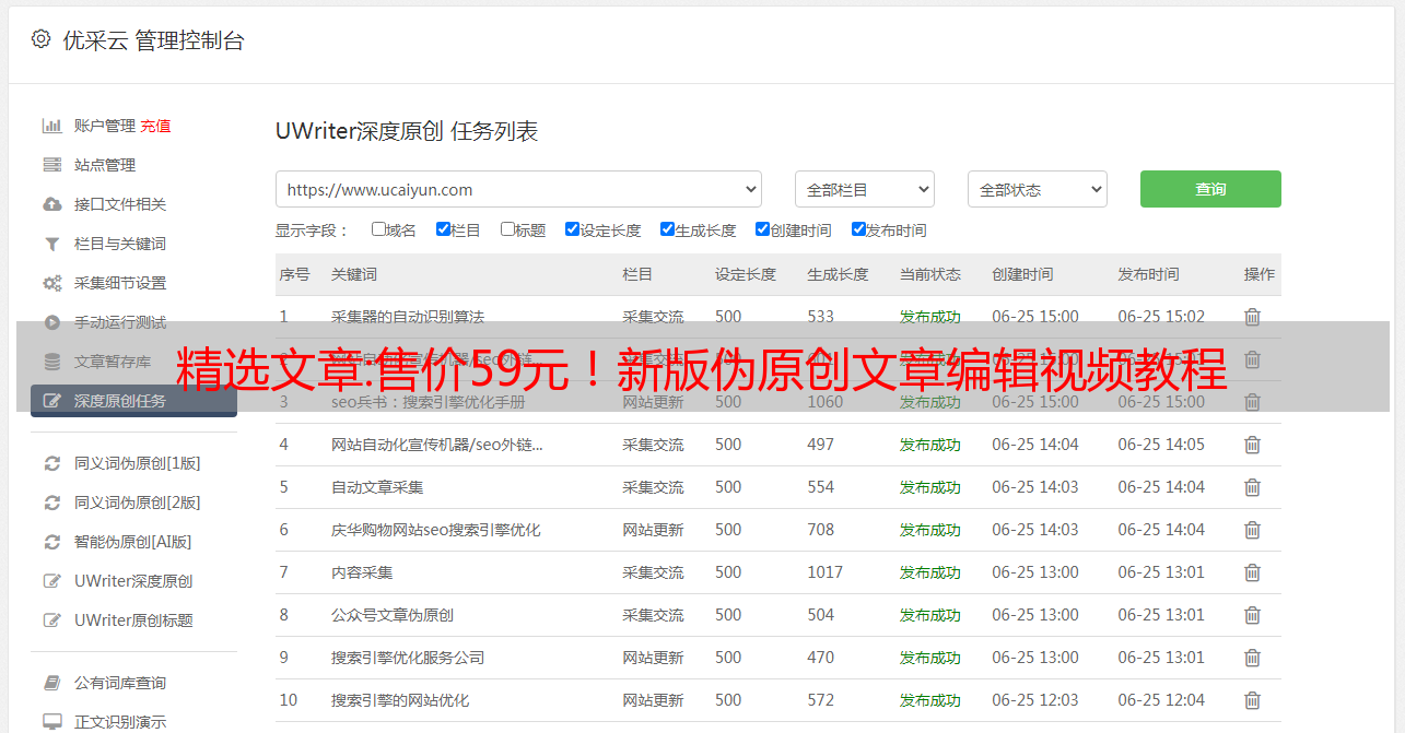 优采云 发布时间: 2022-12-03 06:54精选文章:售价59元!新版伪原创文章编辑视频教程