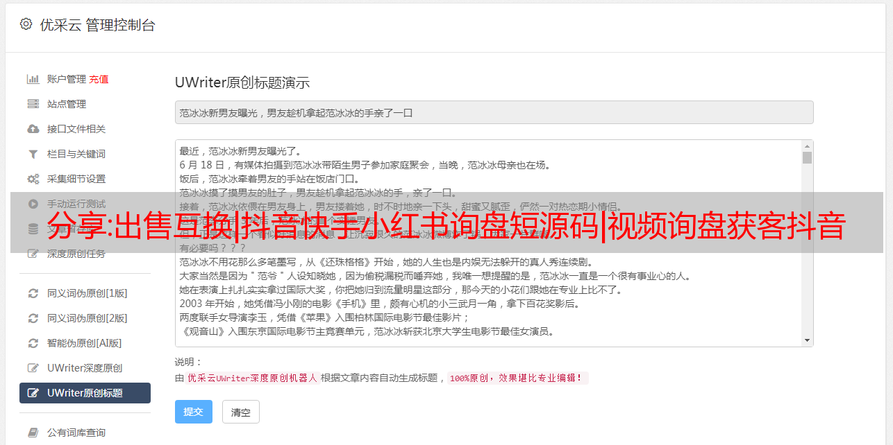 分享:出售互换|抖音快手小红书询盘短源码|视频询盘获客抖音监控同行抖音采集客户源码