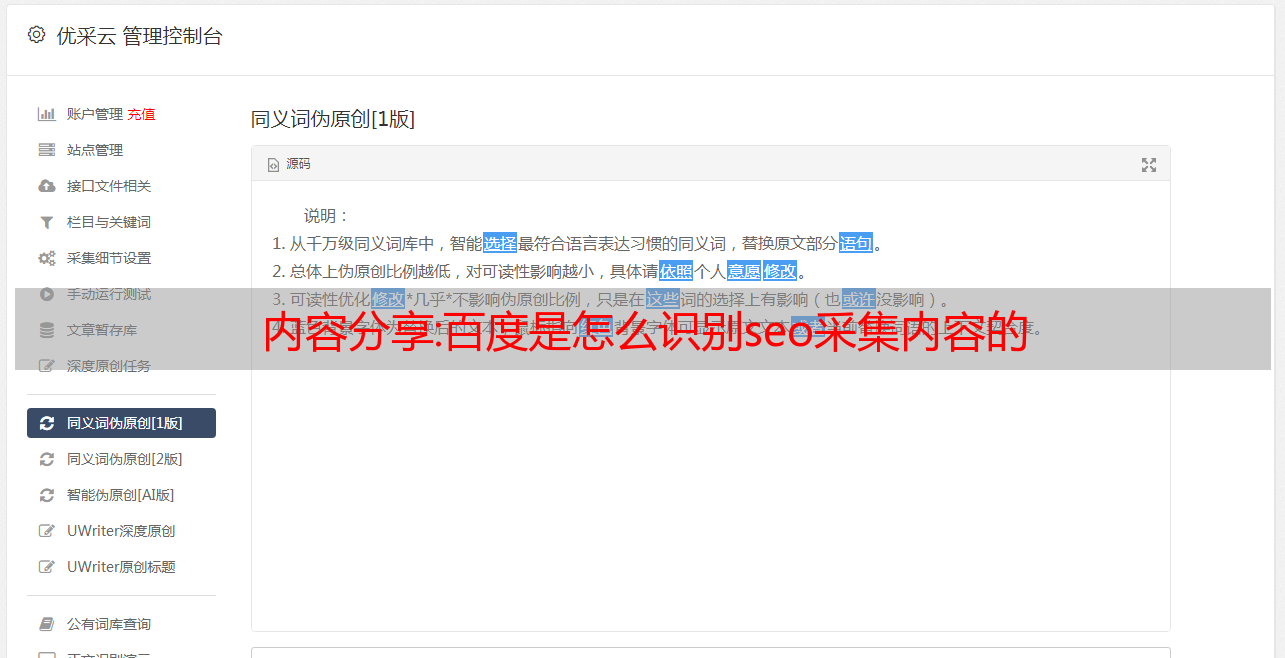优采云 发布时间: 2022-12-03 09:43内容分享:百度是怎么识别seo采集内容的