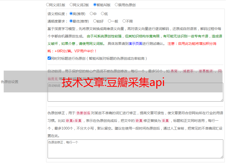 [西风]微信文章采集专业版2.0.1商业版dz插件分享批量采集公众号文章功能等功能详情后台可按微信号,关键字搜索后批量采集公众号文章,无需任何配置,支持批量发布到帖子和门户文章,批量发布时可选择每个文章发布发布到块。前端发帖可以采集单微信文章,只要在插件中设置启用论坛和用户组即可。定时采集是2.1版本后新增的,在插件设置页面填写定时采集公众号的微信号,一行一个,(如果你的服务器性能和带宽不够, 请只填一个),插件使用定时任务抓取最新和采集5篇文章文章为这里填写的公众号(注:因为微信反采集 措施严格多变,常规任务成功率可能较低) 主要特点 1.采集文章中的图片和视频可以保留微信文章的原创格式 2.无需任何配置,通过微信号和关键字搜索 后续批次 采集3. 可以设置成员发帖。4. 批量发帖时,除了发到默认论坛外,还可以设置每个文章单独发到任意论坛。单独设置每个帖子使用的成员 5.可以批量发布到传送门文章,每个文章传送到的传送门频道 发布时可以单独设置。6、采集的文本状态有提示,如果采集文本因故失败,可以重复采集8。前端发帖时,小编会显示微信图标,点击插入微信文章 URL 即可自动插入微信文章 9. 支持发帖、传送门文章审核功能1.安装激活后,在插件后台设置页面,可以更改默认的会员uid和发布的论坛 2.点击开始采集,输入微信号或关键字采集3。采集最新文章列表成功后,可以全选或者选择要采集文本的文章(比如删除不需要的文章文章), 开始 采集 文本 4, 文本采集完成后,可以选择论坛单独发布到每个文章或者全部发布到默认论坛,点击发布完成7,在采集记录中,可以批量发布到传送门文章,可以设置每个文章发布到的传送门频道(必须有可以使用的传送门频道) 8.设置前端发帖权限 使用微信插入文章功能启用用户组和论坛采集按微信ID采集: 1.搜索微信号并点击或直接填写微信ID和昵称并点击开始采集2。显示你最近获得的10-30个采集文章标题,点击标题旁边的复选框确认你想要哪个采集 3. 然后点击采集文本 4,采集采集之后,可以选择直接发布到采集结果下的模块或者重新采集text by keyword采集1,输入关键字,点击Search 2. 显示获取到的文章标题列表,点击标题旁边的复选框确认需要的采集 3. 点击下方的采集按钮并发布按钮,释放将完成。发布后,前端不显示文章列表,请点击后台-工具-升级统计中第一个【提交】按钮,按网址采集1,填写在公众号文章的地址。每行一个 2. 单击 采集 输入关键字,点击搜索 2. 显示获取到的文章标题列表,点击标题旁边的复选框确认您要的采集 3. 点击下方的采集按钮发布按钮,释放完成。发布后,前端不显示文章列表,请点击后台-工具-升级统计中第一个【提交】按钮,按网址采集1,填写在公众号文章的地址。每行一个 2. 单击 采集 输入关键字,点击搜索 2. 显示获取到的文章标题列表,点击标题旁边的复选框确认您要的采集 3. 点击下方的采集按钮发布按钮,释放完成。发布后,前端不显示文章列表,请点击后台-工具-升级统计中第一个【提交】按钮,按网址采集1,填写在公众号文章的地址。每行一个 2. 单击 采集 请点击后台-工具-升级统计中第一个【提交】按钮,按网址采集1,填写公众号地址文章。每行一个 2. 单击 采集 请点击后台-工具-升级统计中第一个【提交】按钮,按网址采集1,填写公众号地址文章。每行一个 2. 单击 采集