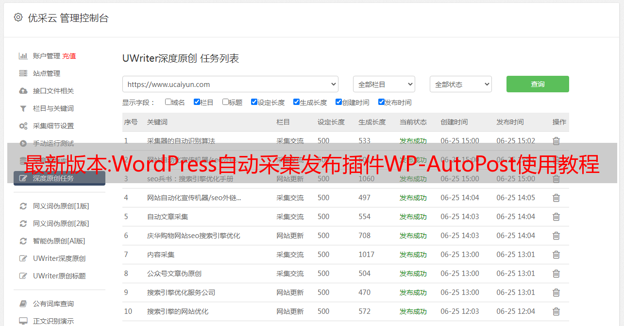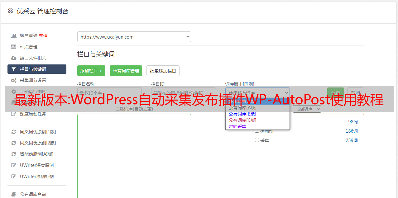 优采云 发布时间: 2022-12-04 01:50最新版本:WordPress自动采集发布插件WP-AutoPost使用教程