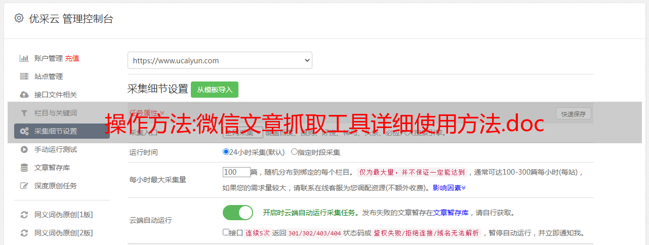优采云 发布时间: 2022-12-07 03:48操作方法:微信文章抓取工具详细使用方法.doc