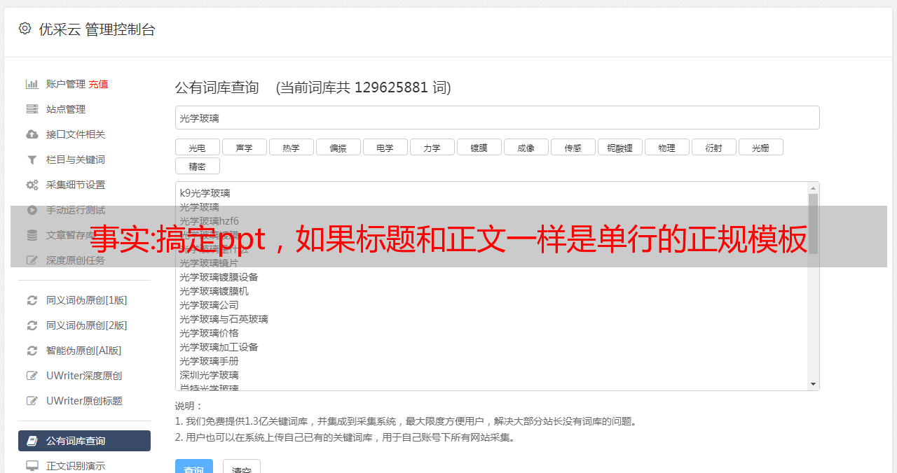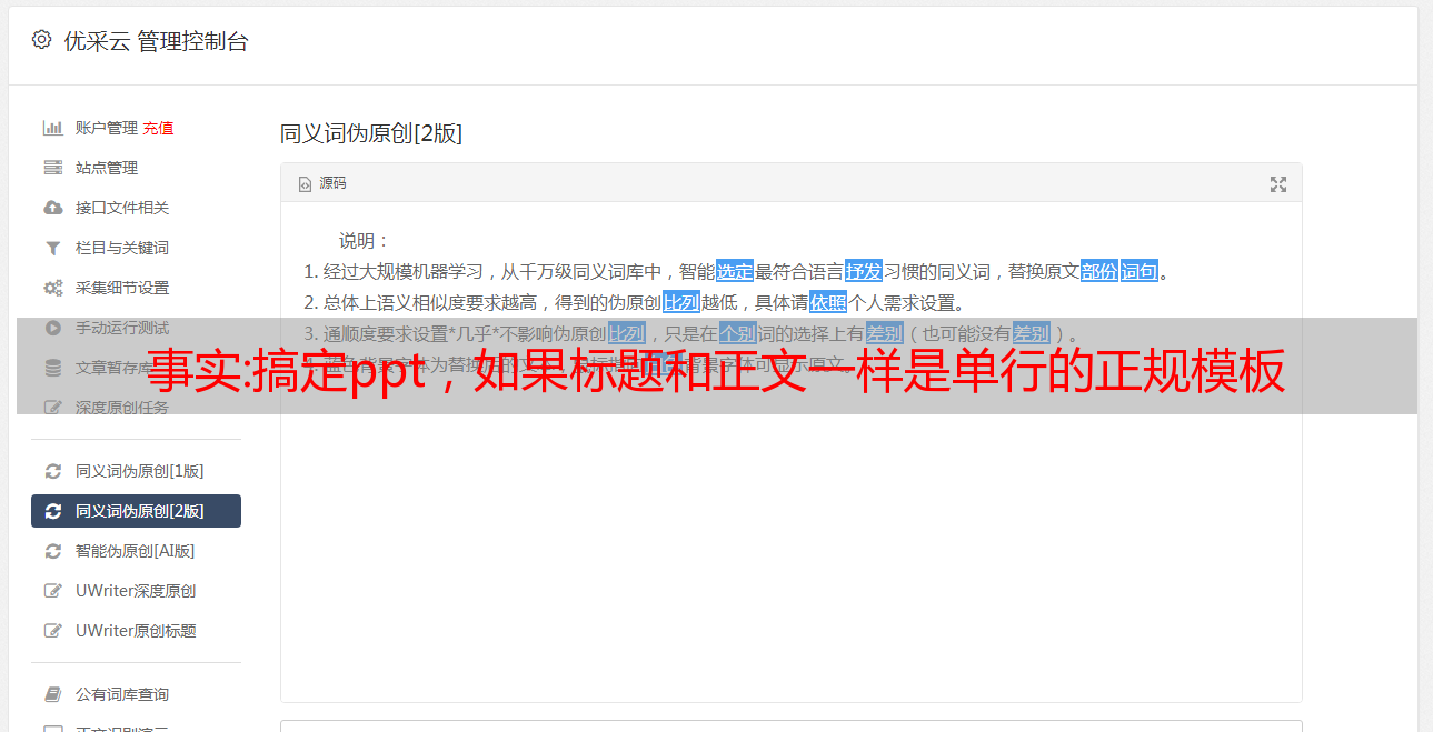 优采云 发布时间: 2022-12-07 11:36事实:搞定ppt,如果标题和正文一样是单行的正规模板
