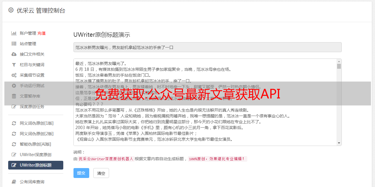 优采云 发布时间: 2022-12-09 13:54免费获取:公众号最新文章获取API