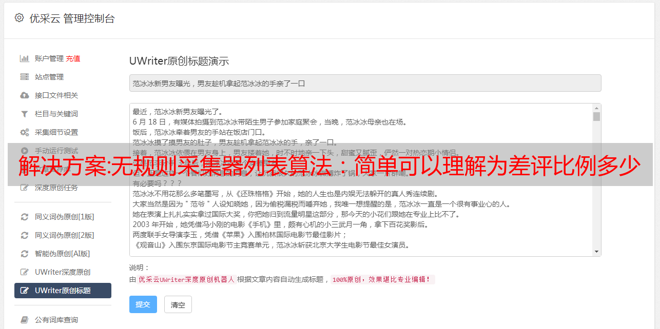 解决方案:无规则采集器列表算法:简单可以理解为差评比例多少