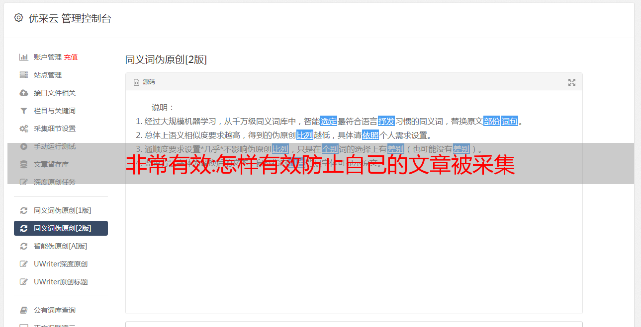 优采云 发布时间: 2022-12-12 16:30非常有效:怎样有效防止自己的文章被采集