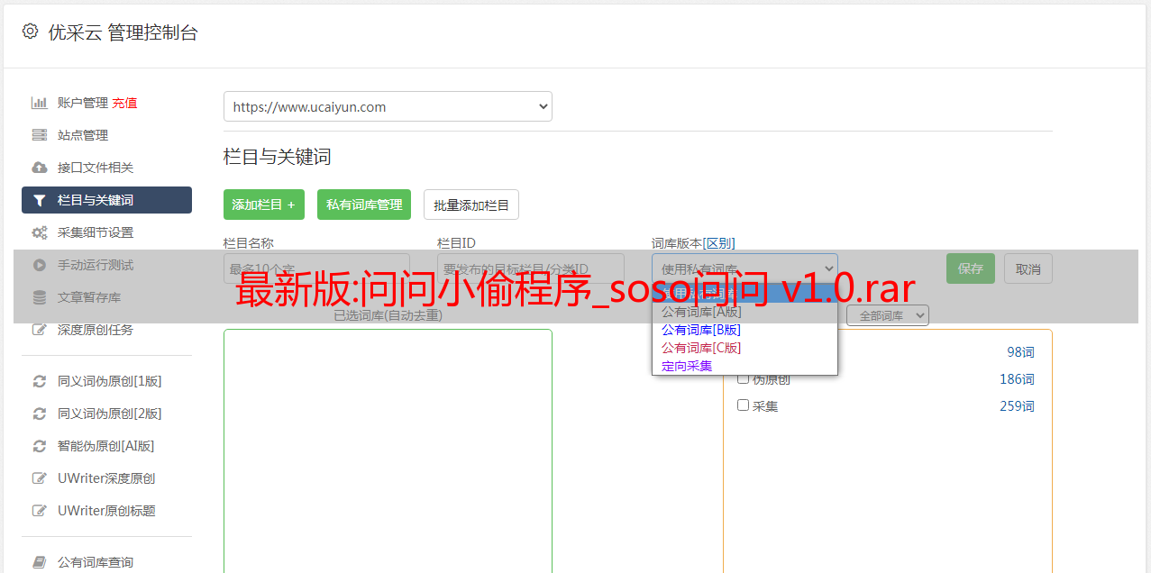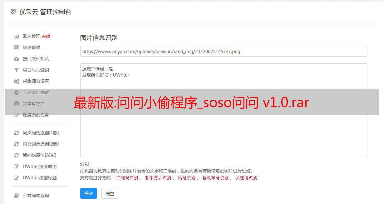 问小偷程序_搜搜问小偷最新版伪原创搜搜问小偷,SOSO问小偷最新标题伪原创演示站1:wwwwwwhzwnet(百度收录超过300万)演示站2: (新站还没有收录)最重要的是,包更新演示站是美服,访问慢是正常现象,不是程序延迟的问题。1.增加标题自动伪原创功能,目前只有本店有此功能的版本,谨防假冒!2、可自定义文章页面路径、html文件名、列表路径、列表文件名等。 3、绿色无广告,可自行添加广告。4.程序只有100KB大小,支持win主机和linux主机,不生成html,并且在整个站点中是伪静态的。注意:这个程序是一个虚拟程序并且是可复制的。程序一经售出,将不予退款。购买前请参考演示站点。程序保证和demo一样。请买家在收到程序后进行功能测试,没有问题请尽快确认。本站只接受好评,拒绝差评。如果不能达成一致,请不要购买。演示地址:(复制并在浏览器中打开) 经测试,收录继续增长,比简单版好很多。购买高级版并获得简单版和 .net 版。此版本为PHP版本,需要windows环境下的PHP和伪静态支持url后缀可以自定义,
