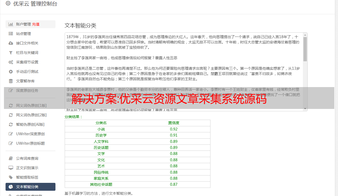 优采云 发布时间: 2022-12-14 21:56解决方案:优采云资源文章采集系统源码