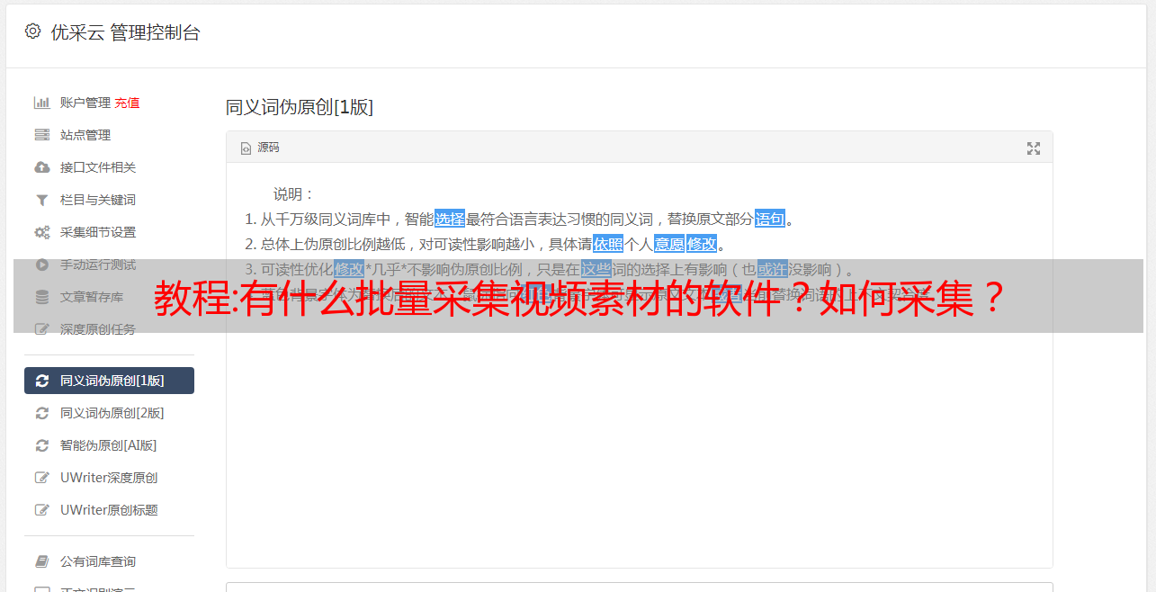 优采云 发布时间: 2022-12-15 02:48教程:有什么批量采集视频素材的软件?如何采集?