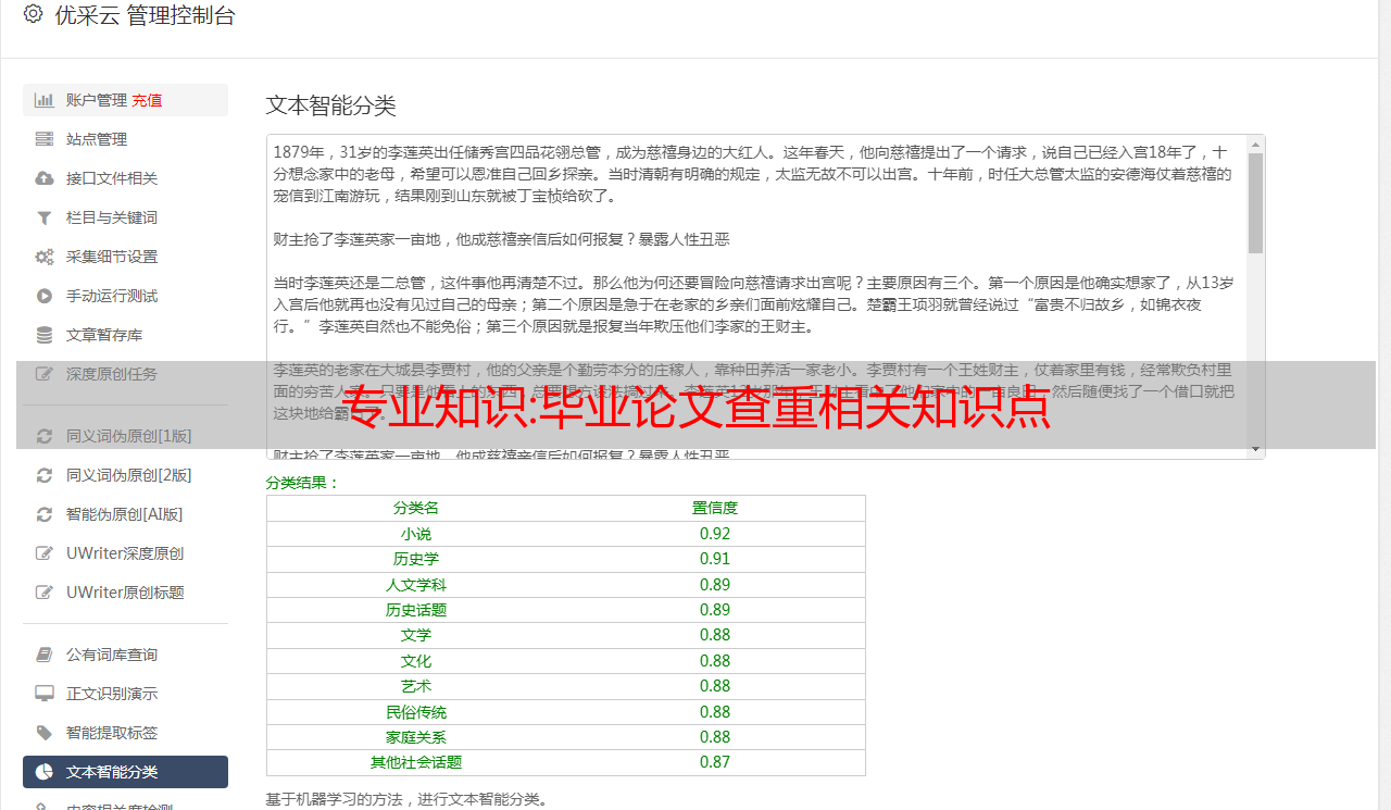 优采云 发布时间: 2022-12-15 05:32专业知识:毕业论文查重相关知识点