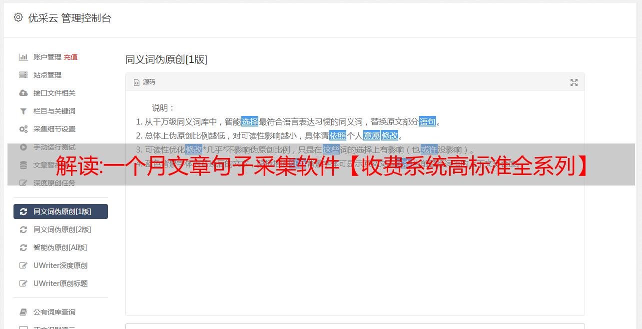 解读:一个月文章句子采集软件【收费系统高标准全系列】