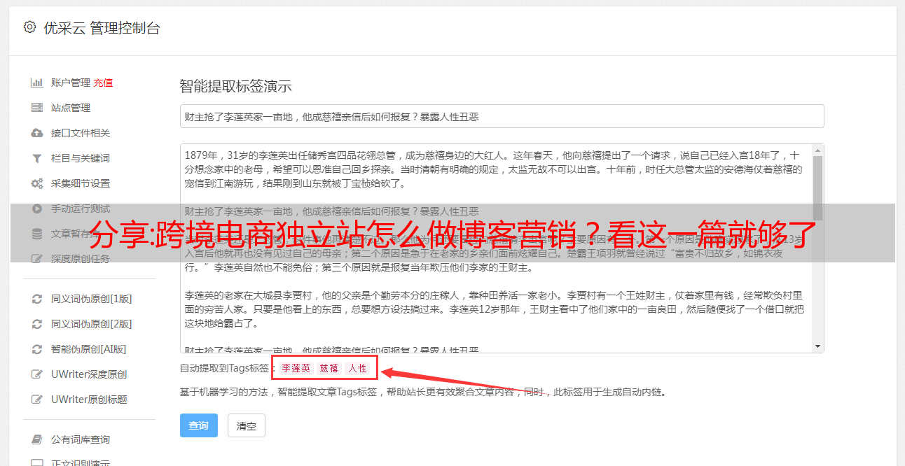 优采云 发布时间: 2022-12-17 08:29分享:跨境电商独立站怎么做博客营销?看这一篇就够了