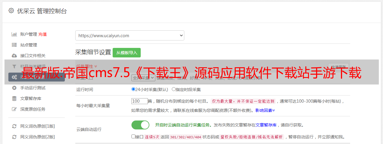 优采云 发布时间: 2022-12-18 22:43最新版:帝国cms7.5《下载王》源码应用软件下载站手游下载站源码带手机版带优采云采集