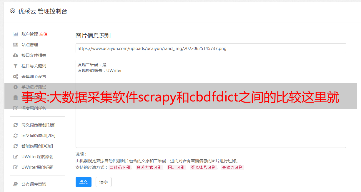 优采云 发布时间: 2022-12-19 00:09事实:大数据采集软件scrapy和cbdfdict之间的比较这里就不做过多的文字叙述了