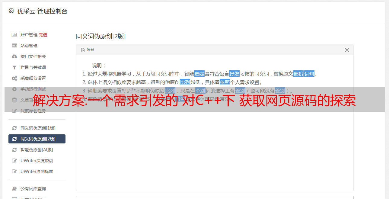 优采云 发布时间: 2022-12-19 14:20解决方案:一个需求引发的 对C++下 获取网页源码的探索