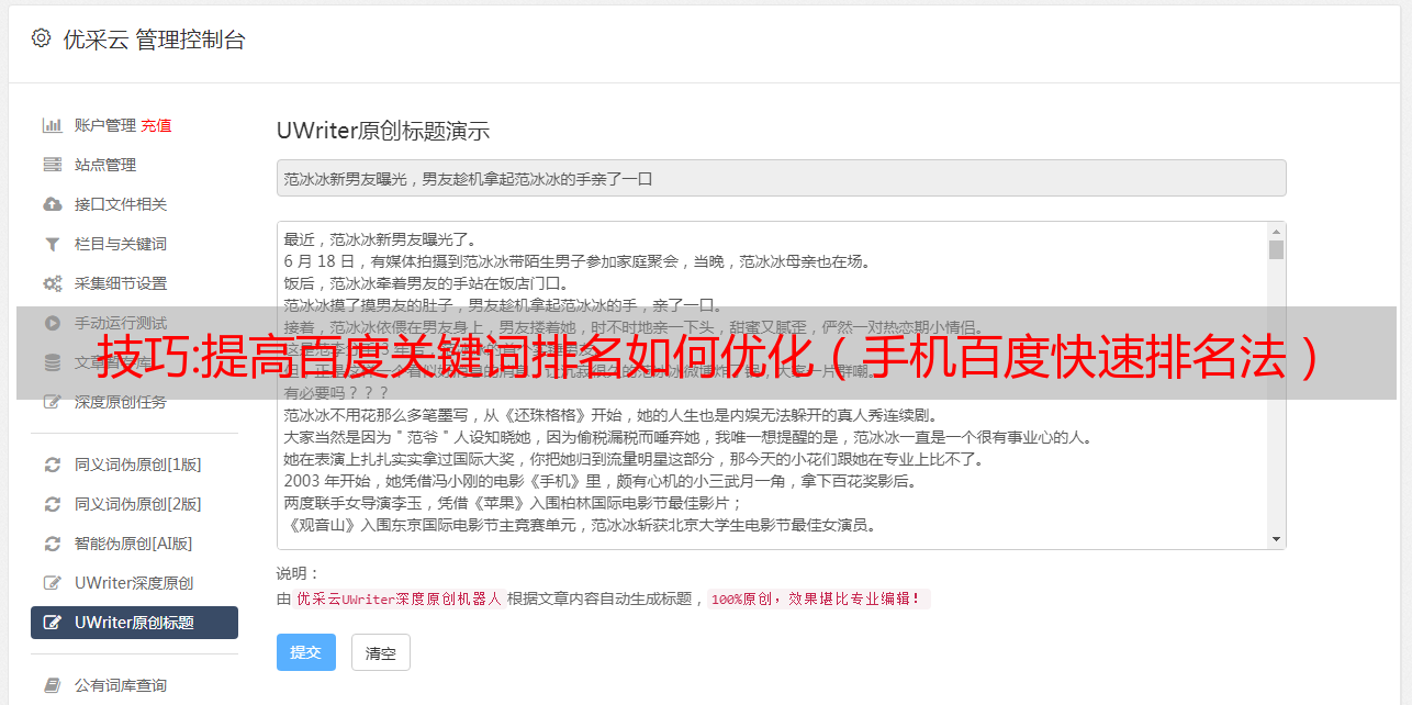 技巧:提高百度关键词排名如何优化(手机百度快速排名法)
