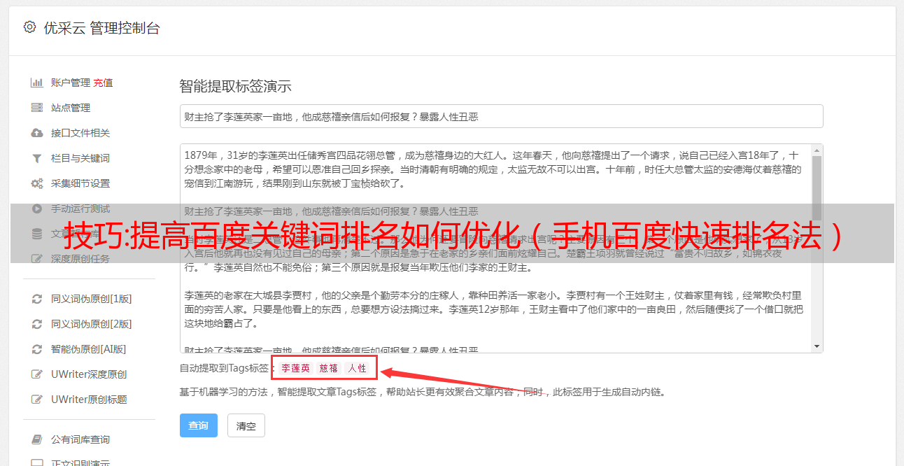 4.文章标题:标题收录关键词,标签用于给关键词增加权重。
