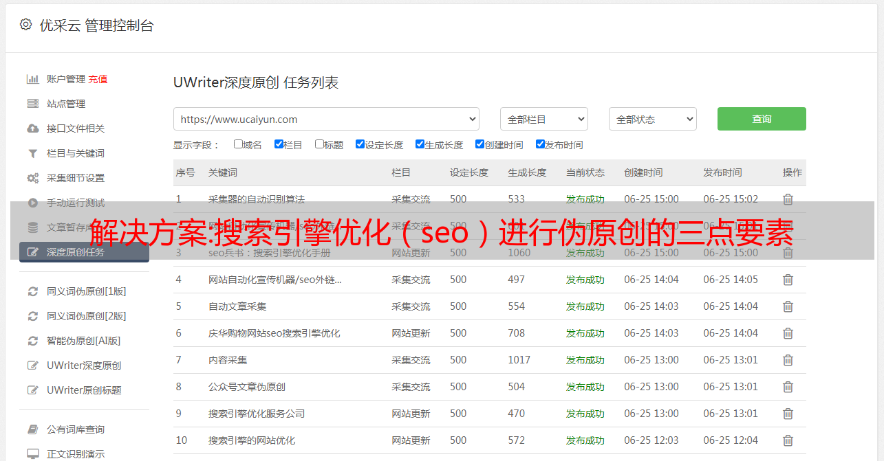 优采云 发布时间: 2022-12-22 06:09解决方案:搜索引擎优化(seo)进行伪原创的三点要素