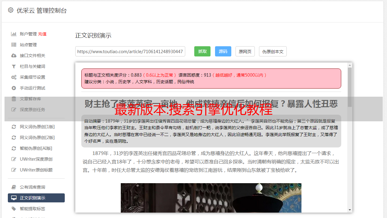 最近在研究优采云采集器。 通过优采云采集软件,可以轻松获取大量的网站内容(采集确实不妥),可以解放站长的双手。 机器时代的工具,自然比人工效率高很多。